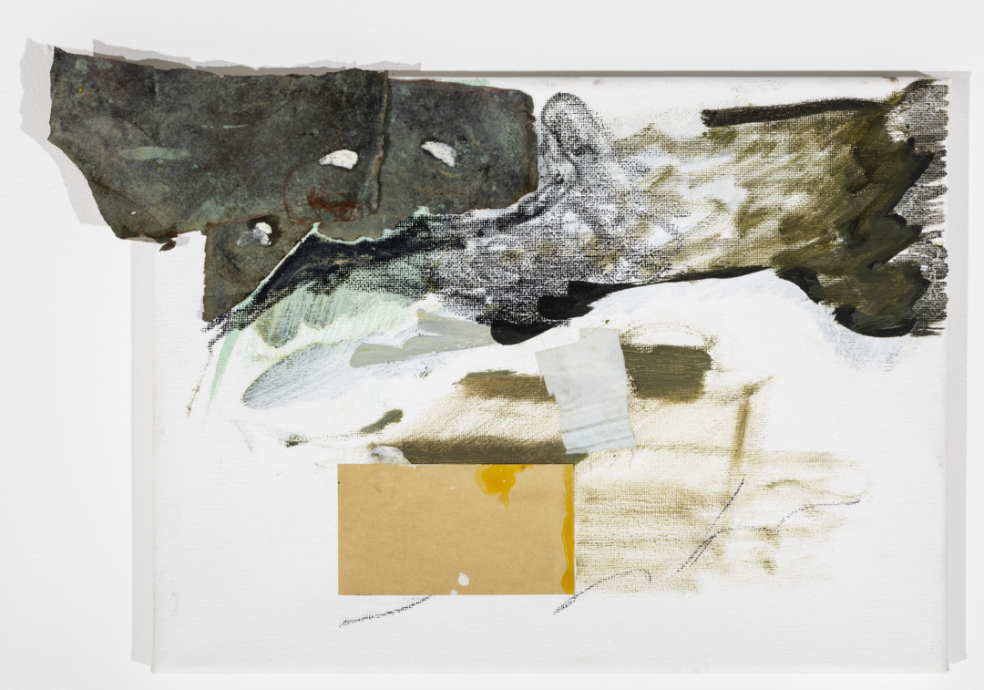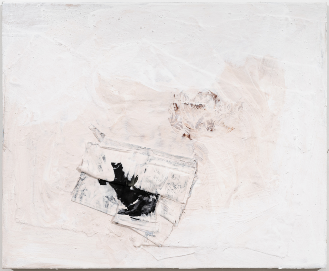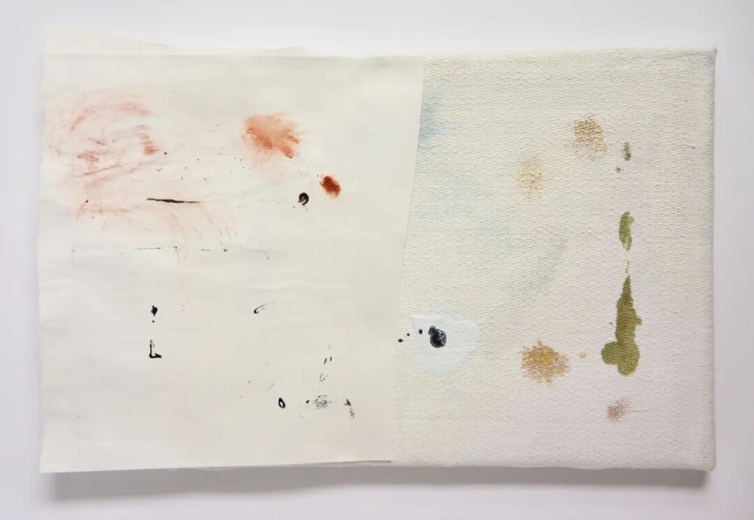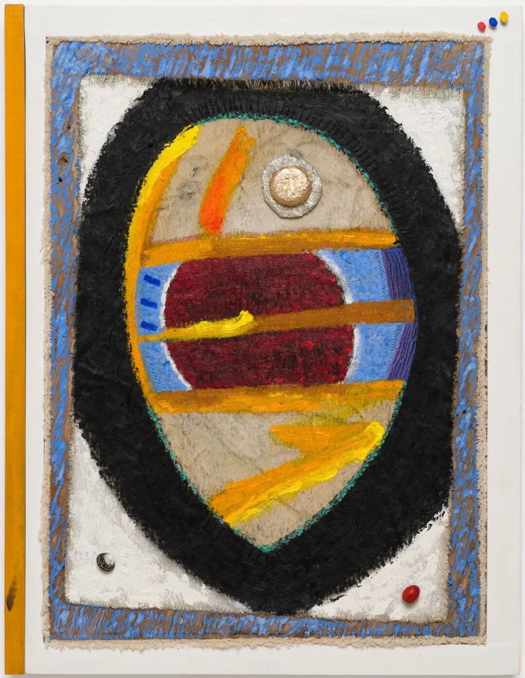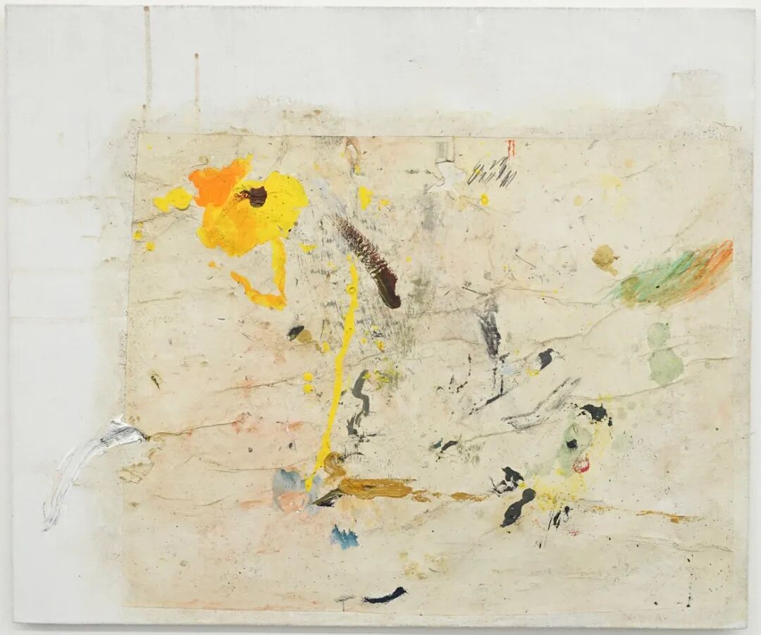 无题 (Fabriano Cy),2022 年,油画、蜡、丙烯酸房屋油漆、干颜料、木炭和水彩,裱于亚麻纸上,55x65cm
