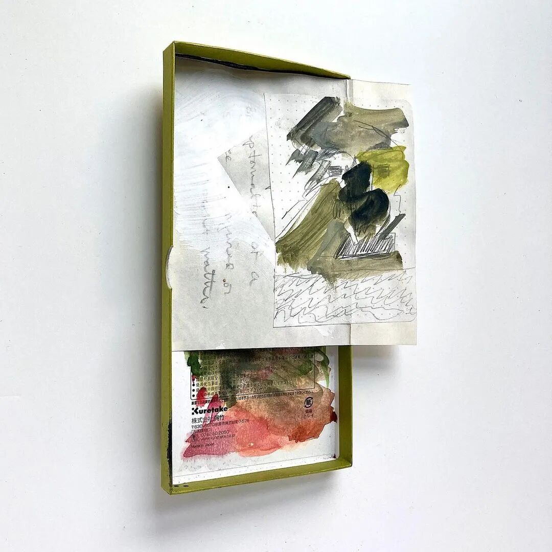 无题(盒诗),2021 年,纸上石膏、水彩、铅笔和木炭,用木支架装在硬纸板上,7.3”x5.8”