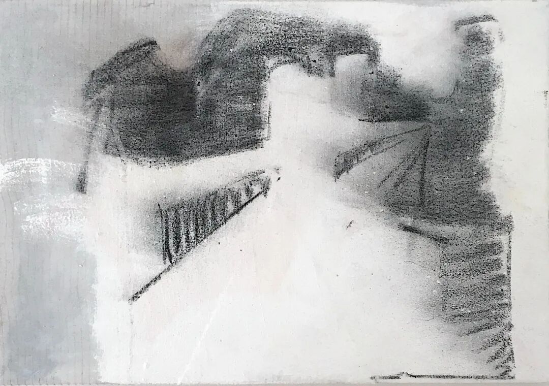 "铂尔曼 (月亮露台)",2019 布面油画、蜡、丙烯和木炭 8" x 10"