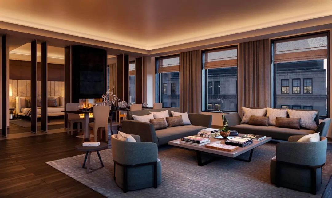 其中有一套为跨越五层的顶层豪华公馆。早在 2018年时,公馆已于酒店开业之前开始出售,这间顶层豪华公馆签约合同售价为 1.8 亿美元。
