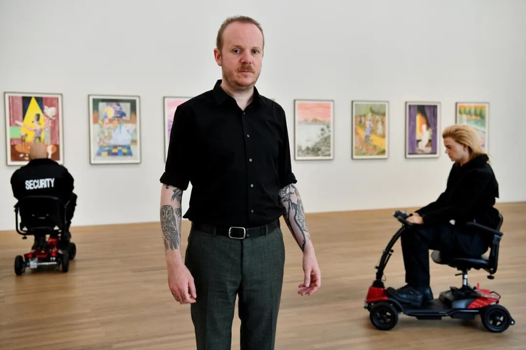 他的 Tinder 个人资料看起来与众不同,2022 年彩色铅笔在纸上 148 x 120 厘米
