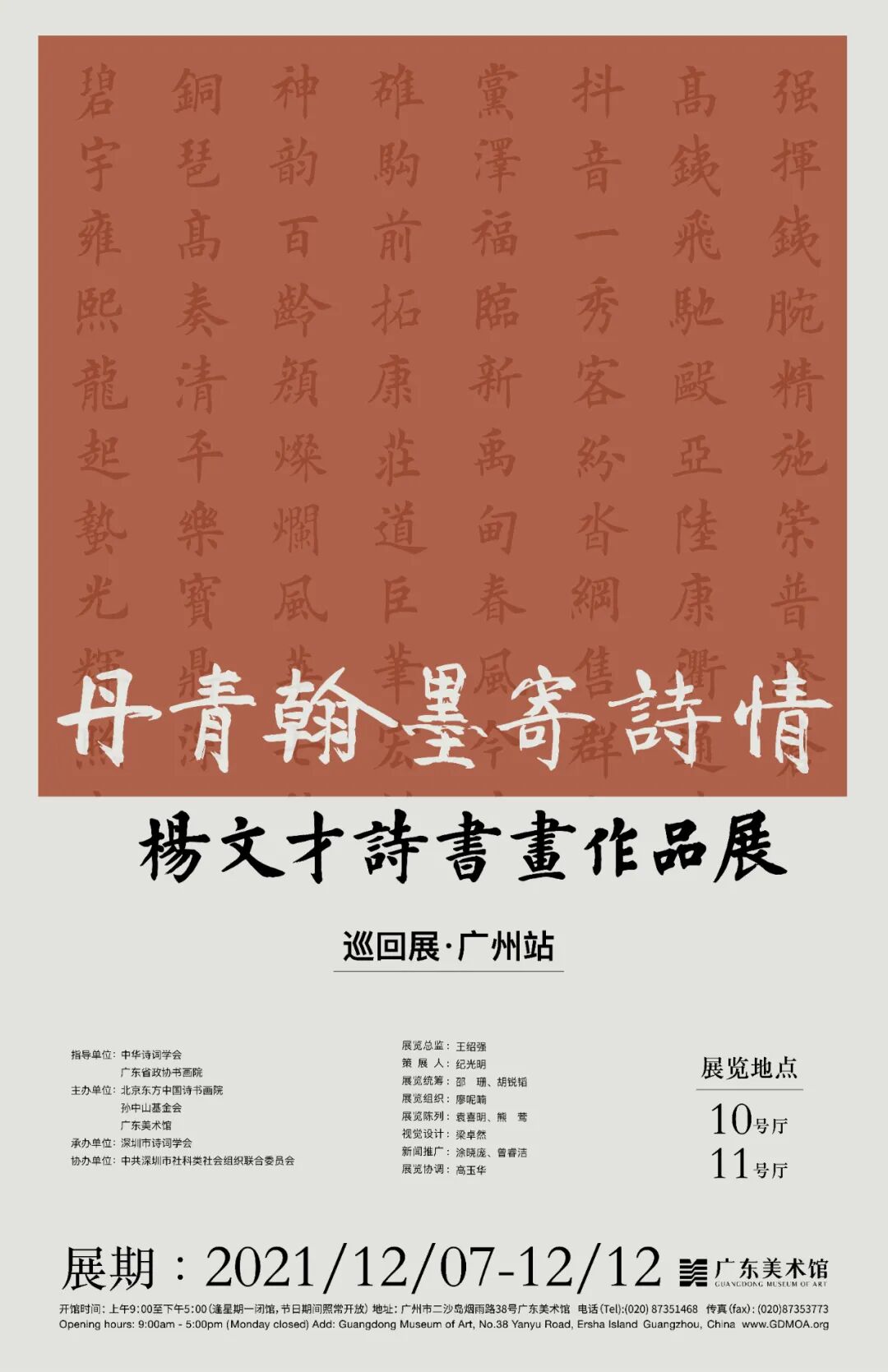 “丹青翰墨寄诗情——杨文才诗书画作品展”于2021年12月7日——12日在广东美术馆展出。本次展览由北京东方中国诗书画院、孙中山基金会以及广东美术馆联合主办。