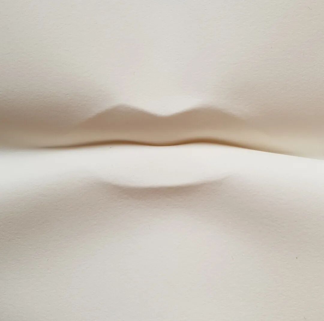 这位折纸艺术家就是来自英国威尔士的波莉·维里蒂,一张普通的白纸,被这位艺术家轻轻捏出几个褶皱,便呈现出了一个迷人的面部雕塑,看上去非常逼真写实,白色的纸张与清晰的面部轮廓,使得这些折纸肖像像极了石膏雕像,只需要一张纸,就可以呈现出拥抱和亲吻的场景。