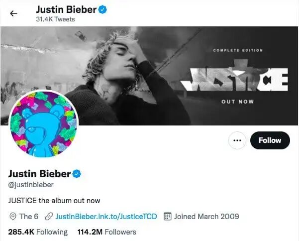 / 上:贾斯汀·比伯把Twitter头像换成了inBetweeners的小熊图像 / 图源:@JustinBieber/Twitter