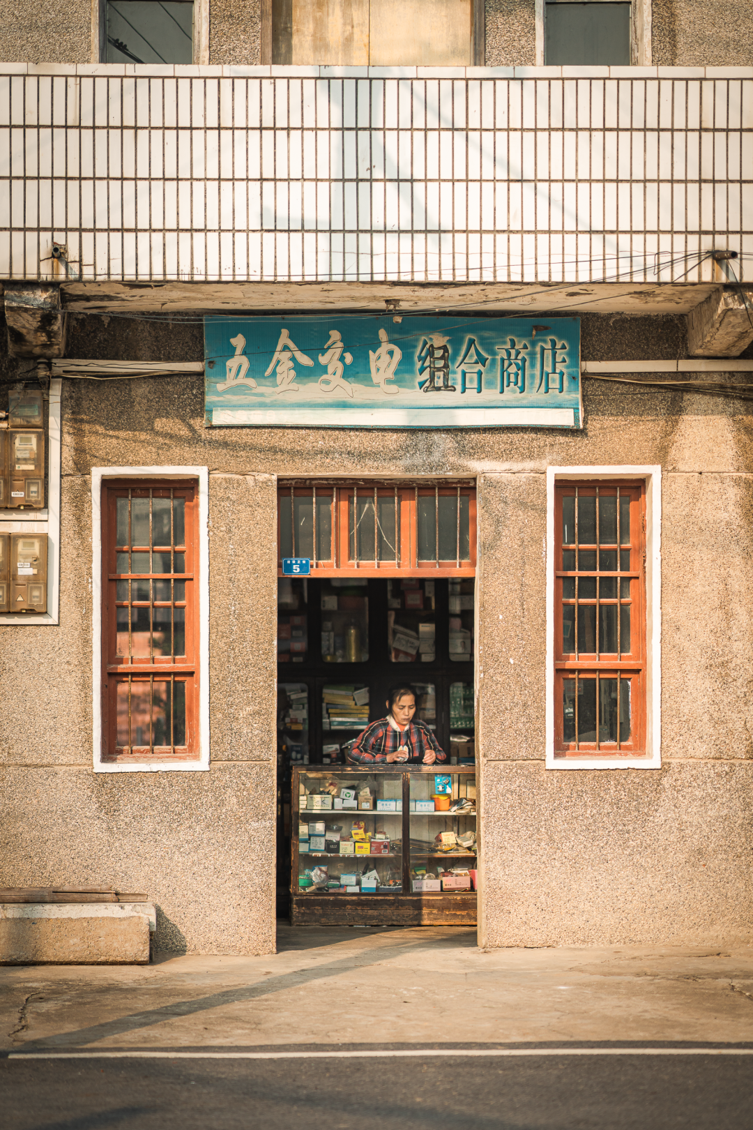 卖菜的老奶奶和早餐店准时出摊,各自忙碌。