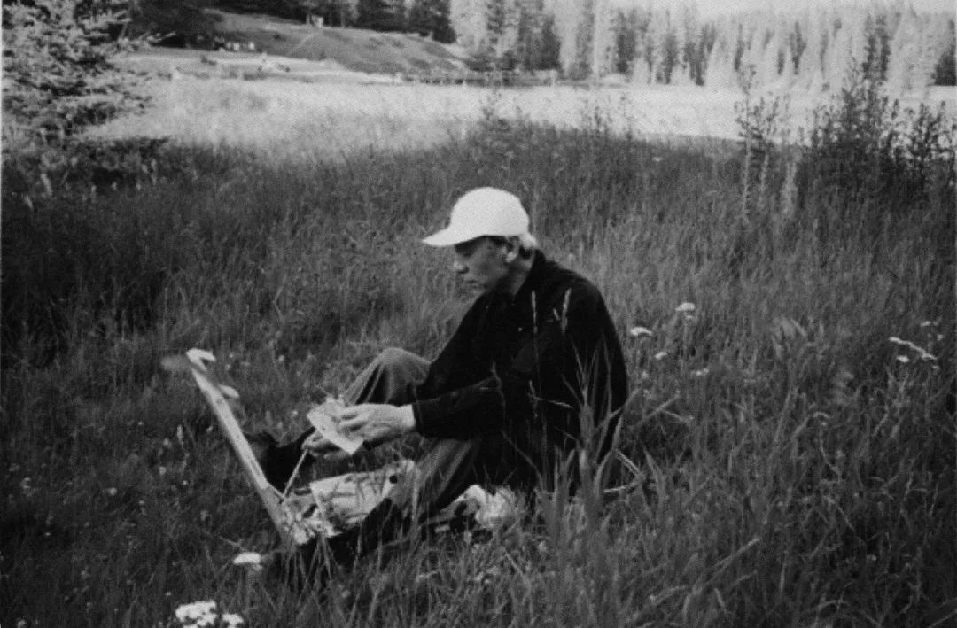 1998年,詹先生在加拿大班夫风景区进行野外写生