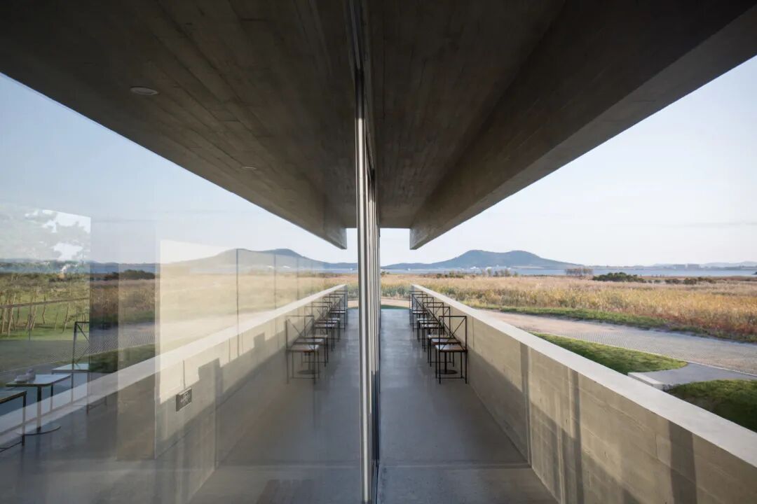 西边矗立着15.6 米高的木塔,是俯瞰整个湿地的高点。为了进一步强调风景的开放性,两座建筑都创造了在走向观景点时逐渐由暗到亮的走廊。