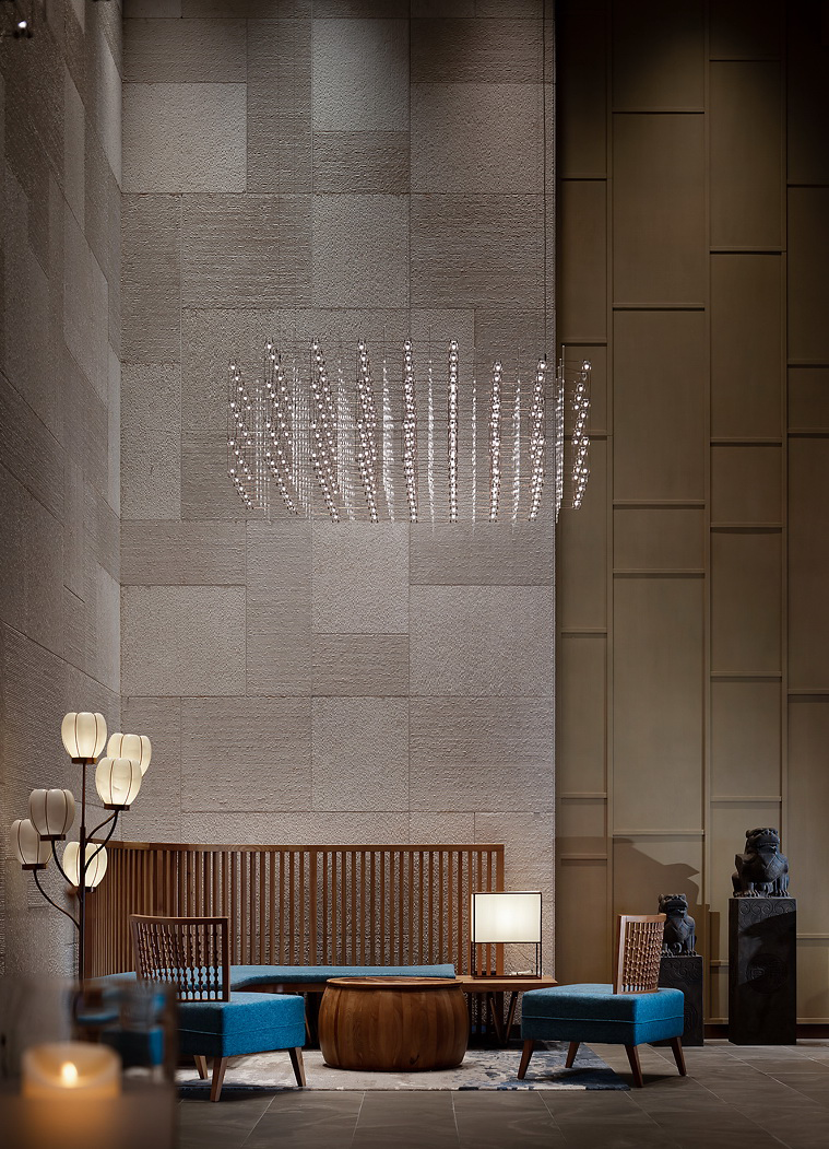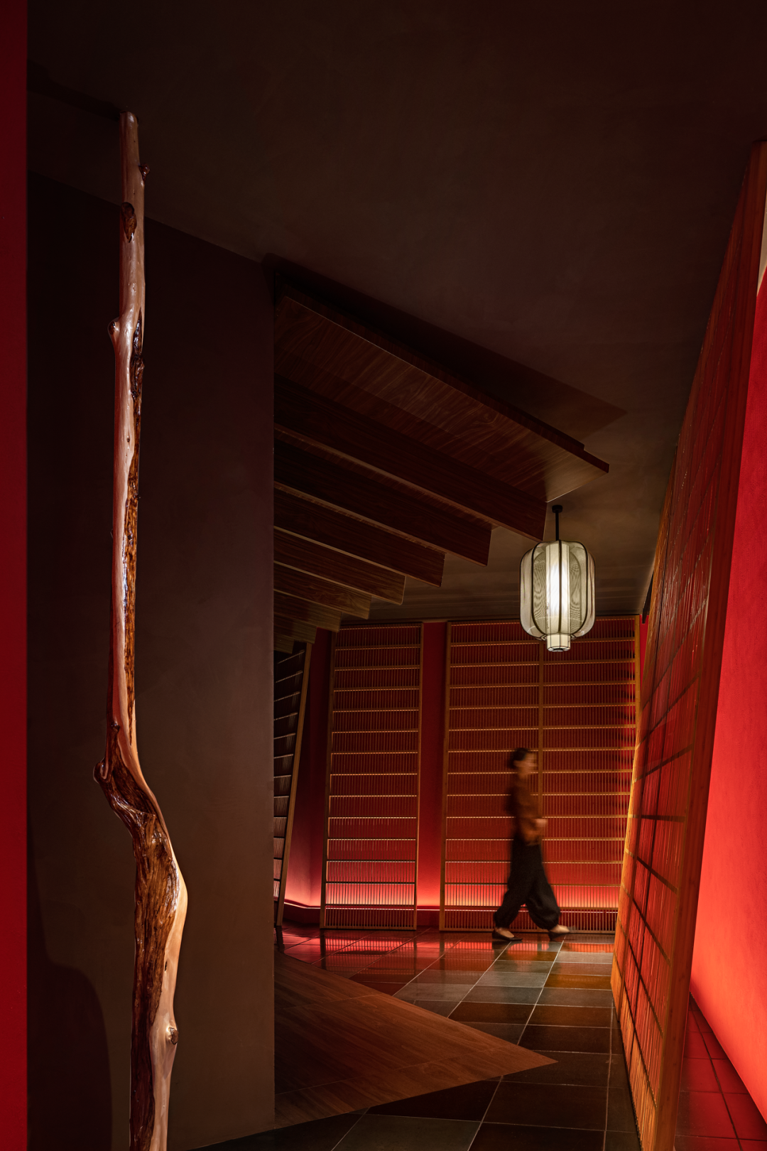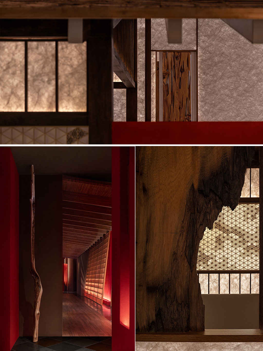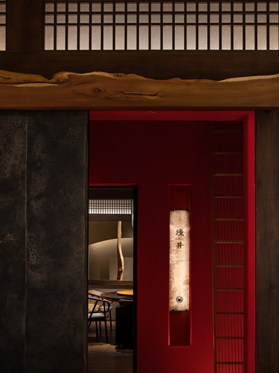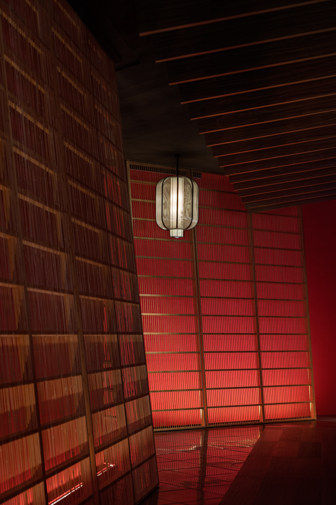 In the shade aesthetics, the element that light affects the interior-shoji. The designer tried to implant modern tiny linear lights in the traditional frame of the shoji, so that the shoji would not be restricted by the width and height of the traditional size, and transmit light evenly. When choosing shoji paper for covering, it deliberately avoided the stereotype of traditional paper, and instead used fiber paper with modern technology to make the covering. Through the light, the fibers in the paper present a warm effect like a flocculent pattern. By successively arranging several open and closed light-emitting barriers, the line of sight and the movement line are merged into an inward channel.