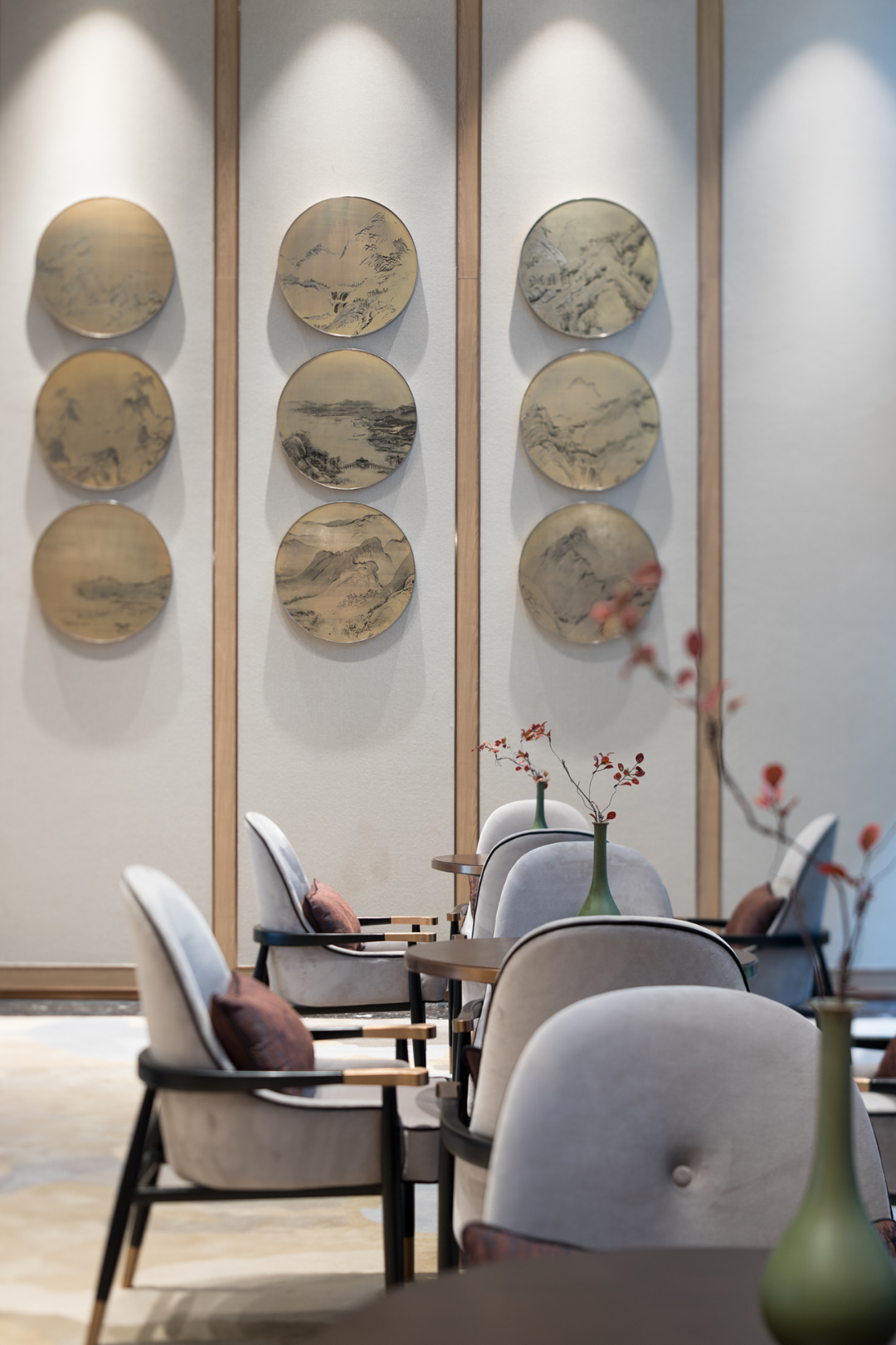 Based on the symbolism generated by the structural form, the design of the private room imitates the umbrella, and the structure of the umbrella is fixed in the space to form a pavilion. The design of the umbrella pavilion has the stability and comfort that can shelter from the wind and rain, and it also integrates a differentiated dining experience into it. The designer also customized an exquisite artist's painting screen "Silver Leaf and Moonlight" for the private room, which includes spring, summer, autumn and winter, four seasons, four seasons of appreciation, and succession. The meaning is to make one thing perfect and extreme, with a unique charm and charm. There are things, simple and natural, and elegant in the subtleties.