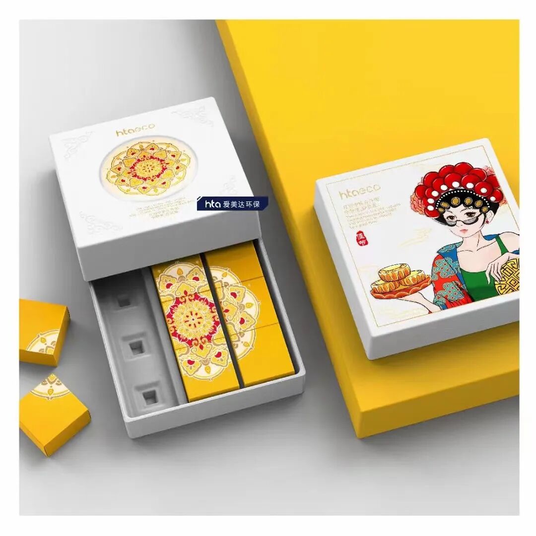 纸浆模塑中秋礼盒,以甘蔗渣为原料,100%可降解,别出心裁地融合了环保的元素。取之自然但又归于自然,提升消费者对品牌好感度。