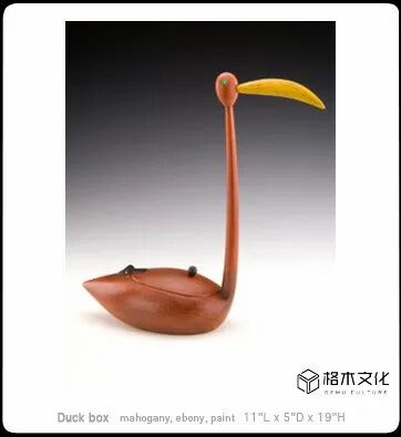 他的作品往往是在保留了传统工艺的美感上,将丰富的雕刻形式与涂漆表面融为一体。