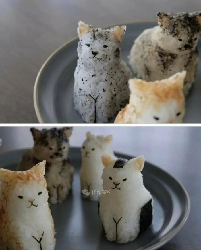 这些饭团(饭团)的形状像猫一样完美