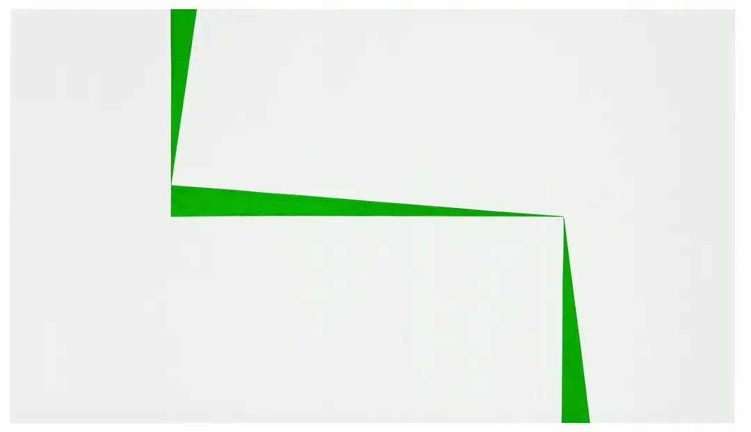 这项工作“归功于埃雷拉对三维结构的迷恋”,两条线的交汇处(在汇合点留下一个小而神秘的间隙)和它们创造的空间,充满了简单但翠绿的绿色,呈现出一系列广阔而神秘的关联:一个带有后退田野的景观,也许是建筑的内部或外部,甚至是地平线上的阳光。