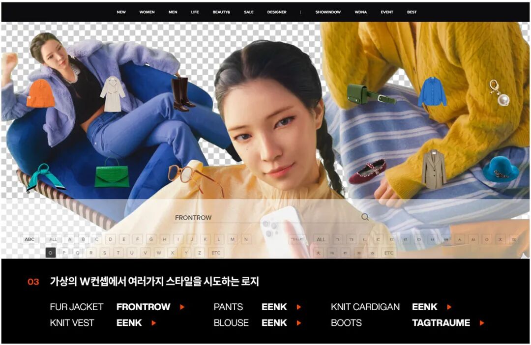 W Concept于2021年12月开设了第一个VR展示厅,用户可以在这里购买50个人气品牌的140多件服装,展厅中的虚拟模特可以提供造型参考。