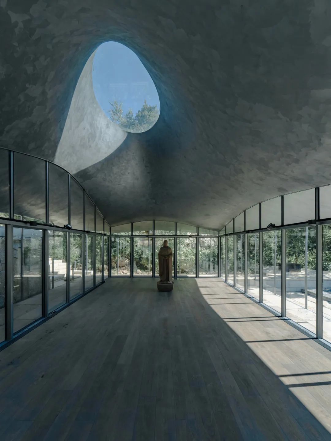 项目建造之初,希望在山谷中建一座纯粹的精神地标,类似海边的孤独图书馆和礼堂,空间本身不承载那么多的“功能性”,而是一个安顿身体、抚慰内心的空间。