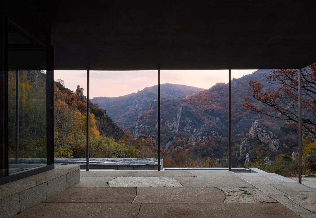 人在通透的禅堂中,山坳的侧壁成为真正的围合物,只有面向山谷的方向足够开放。不远处明代的长城是一颗时间的化石,所有的安排都是为了这一刻的安静。