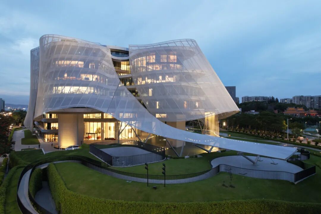 而且上面也说了是延续了建筑设计的语言,可以看到这个品牌的建筑也是同样用布料作为主要元素。