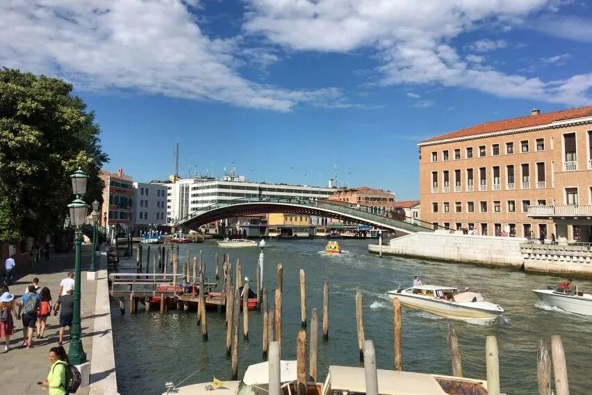 玻璃钢弯曲的人行天桥被游客大量使用,部分原因是它靠近威尼斯的主要火车站。威尼斯大约有400座桥梁,其中宪法桥是自16世纪以来在大运河上建造的第四座桥梁。