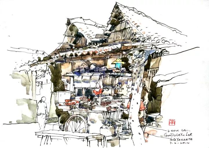 坚持每天一张画!他的速写太牛啦~城市街景、人物全都被描绘了下来~