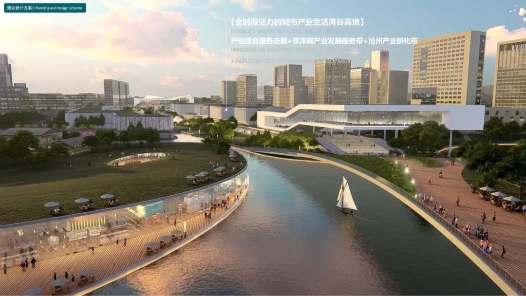 团队方案更注重禀赋沧州老城区的条件,引绿入城,生态引领区域发展;以15分钟、10分钟、5分钟生活圈的理念,补齐公共服务设施的短板,生态连续的公共空间体系提供慢享生活的活力载体;营造全年 24 小时活力的复合活力街区;高品质的服务支撑系统全力保障城市运营、富有特色的城市风貌彰显新时代城市品质。以“生活味、高颜值、归属感”为目标,提出了宜居城区的理想模型和站城融合的实施途径,提升人的舒适感与土地价值,实现多元业态的立体复合,营造多元复合的活力街区。