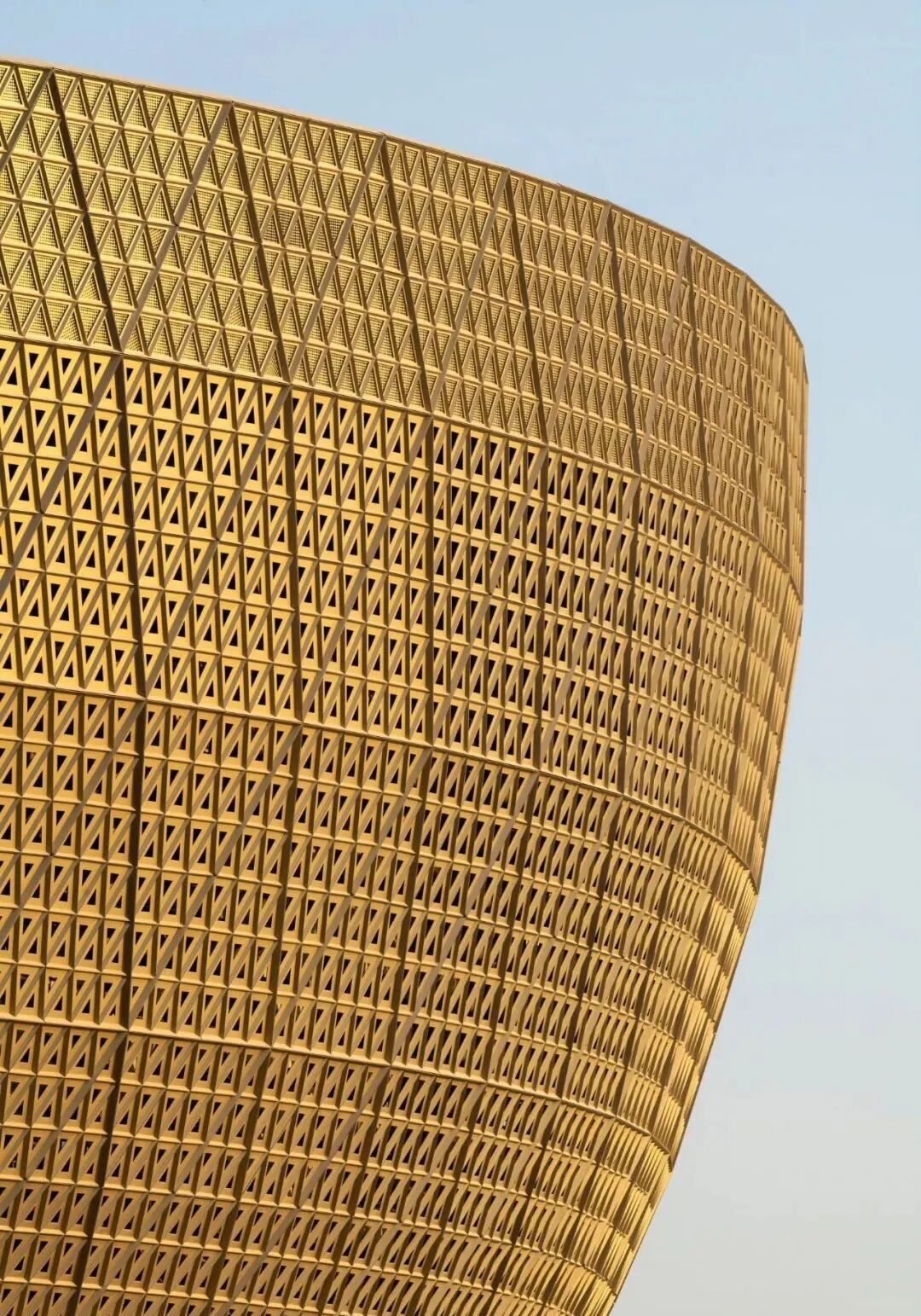 设计灵感来源于伊斯兰碗和卡塔尔本土建筑,负责设计这座场馆的 Foster + Partners 表示,这座场馆就像是一件“黄金容器”,设计的出发点是为球员和观众创造一种“沉浸式的氛围”。