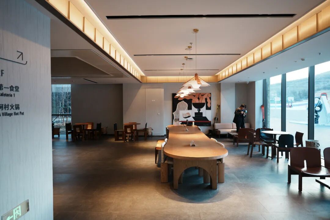 滑雪中心底楼配有Manner咖啡和沿落地窗舒展的咖啡席,二层还有火锅和食堂。