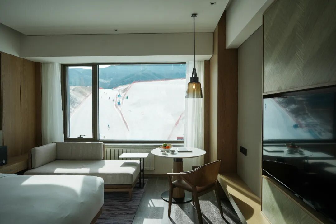 ▲ 大幅景观窗着实是客房的一大福利,面朝雪场的客房都能将雪道和周围山峦交织的美景尽收眼底。