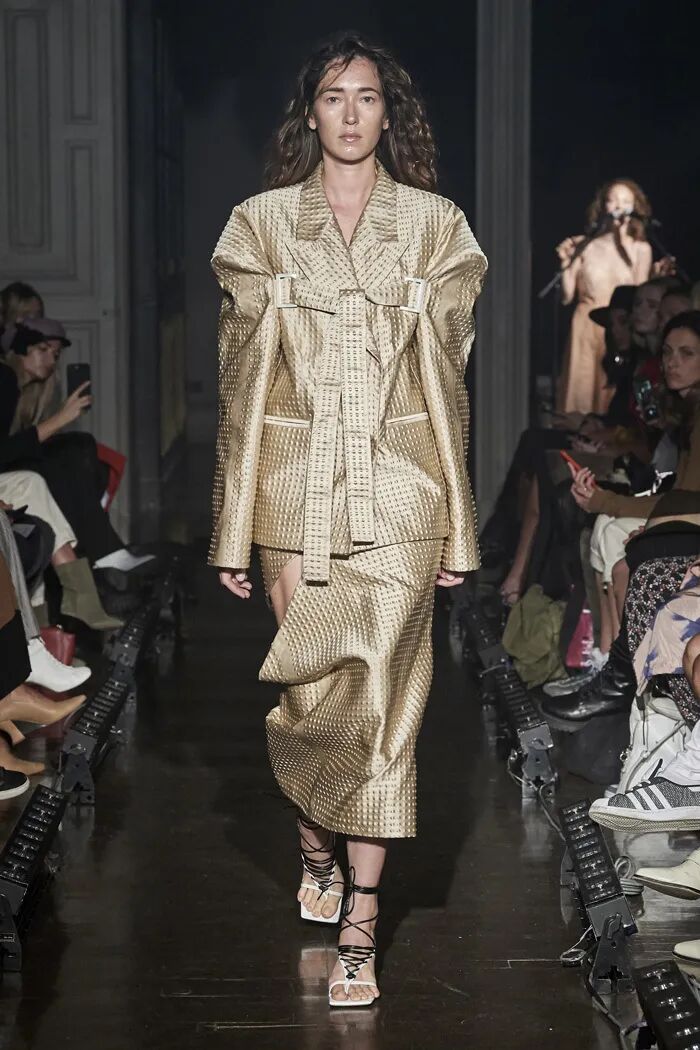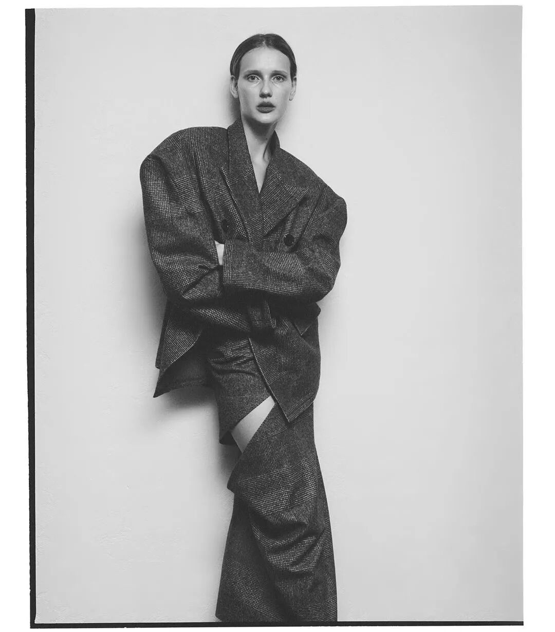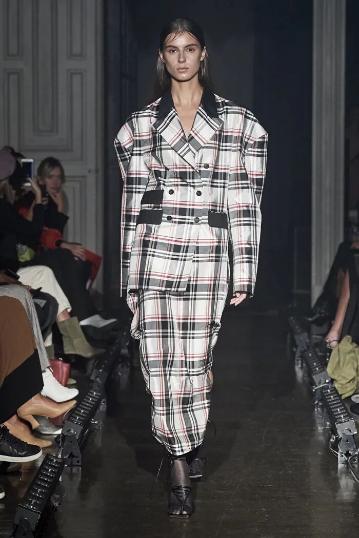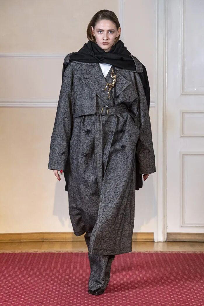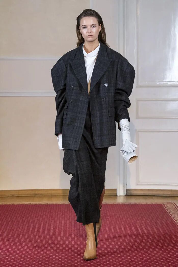 Litkovskaya在2019秋冬中更是将廓形的力量感发挥到最大,设计师将色彩范围锁定在基础的黑白与棕色之间,用结构的变化让设计更加亮眼。