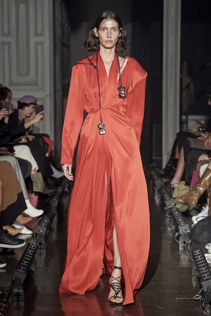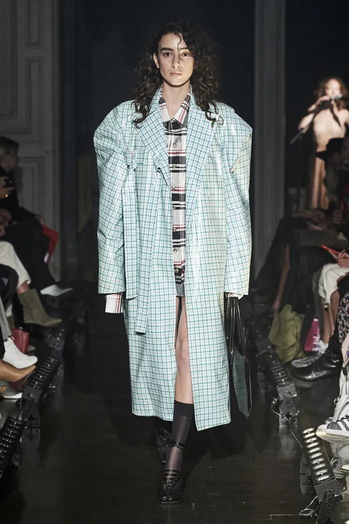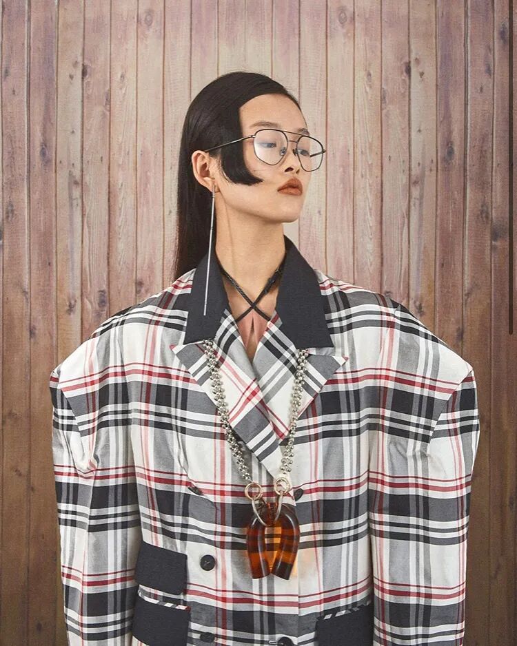 在2020春夏系列中,Lilia Litkovskaya将绸缎感与挺阔格纹面料进行拼接,又将旗袍元素与皮革进行碰撞,这样的东西融合的打开方式让人耳目一新。