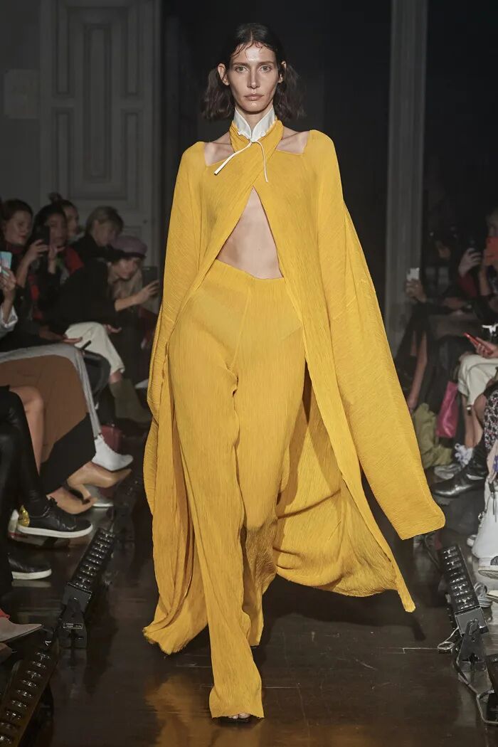 对于色彩的选择上,Lilia Litkovskaya没有往季的保守,而是选择了更多明亮的色彩。湖水蓝、姜黄色、金属色、珊瑚橙…多色彩的应用让秀的氛围更像是夏天。