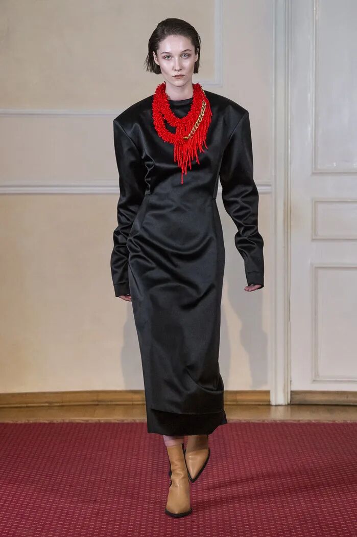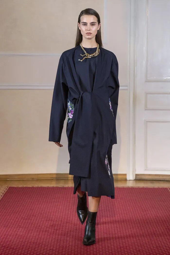 Litkovskaya对于结构主义设计十分钟爱,你能看到许多巧思在衣片与衣片之间,时而通过色彩的变幻,时而通过穿插的结构…