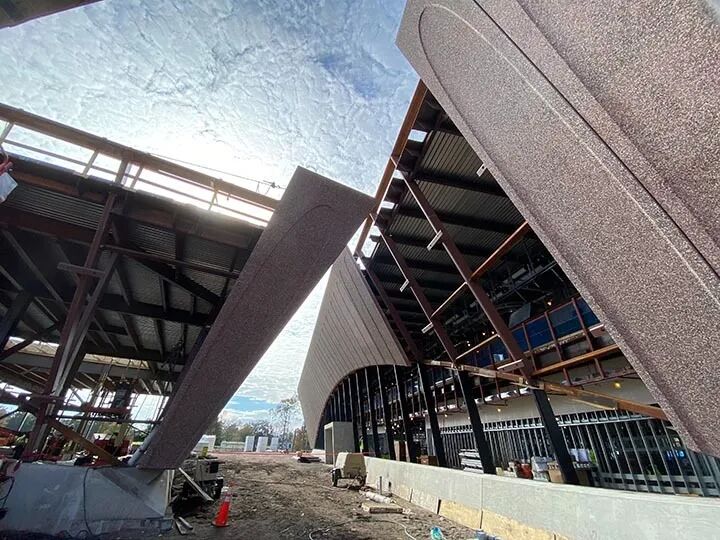 建筑延续了大卫惯用的设计语言,粉色和浇筑混凝土,为奥克兰打造了一个全新的地标。
