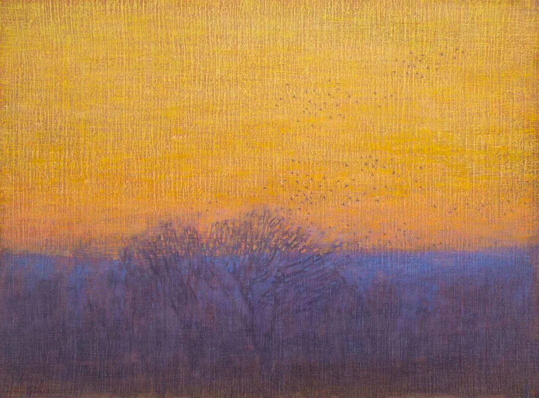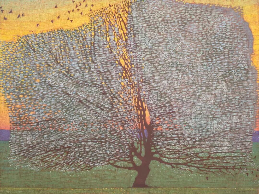 "在一个方便、快速和喧闹的时代,我的画是安静的、缓慢的,用大多数已经使用了几个世纪的材料手工制作。创作这些画对我来说是一种沉思的行为,希望也能邀请观众分享这种体验。"