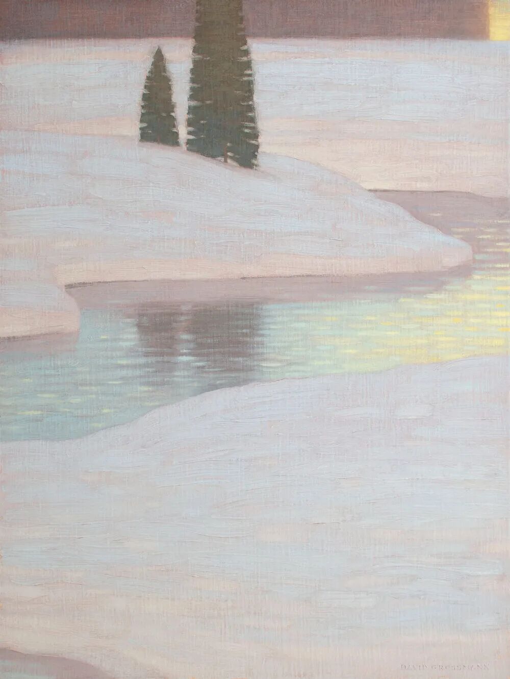 大卫-格罗斯曼的景观绘画致力于探索自然与直觉记忆的之间的界限。这些探索对格罗斯曼来说很早就开始了,他两岁时全家从美国搬到了南美洲。阿塔卡马沙漠和安第斯山脉构成了他对自然景观的早期意识,而他的内省倾向也因在不同文化和语言之间成长的经历而得到深化。