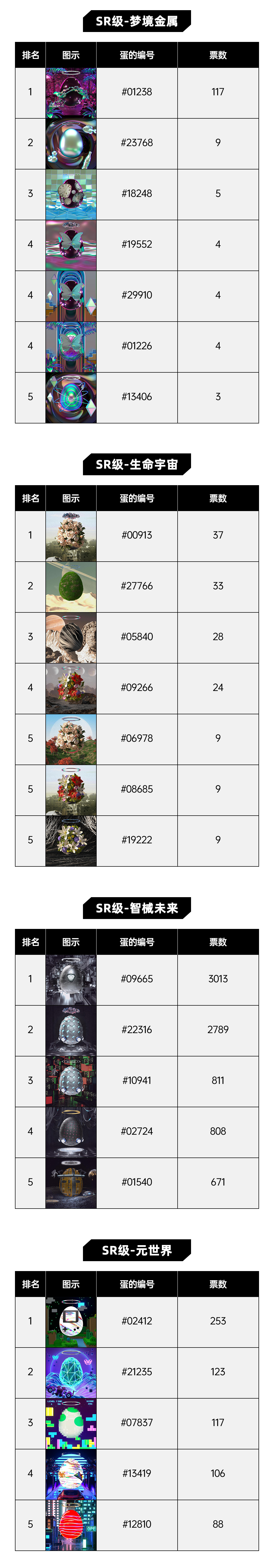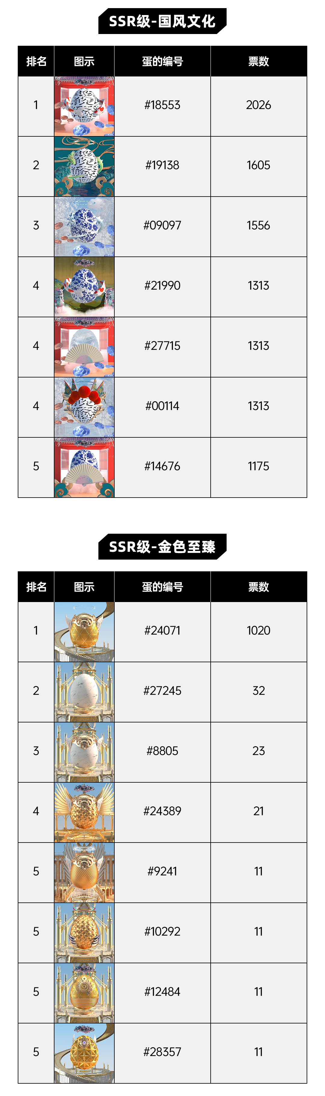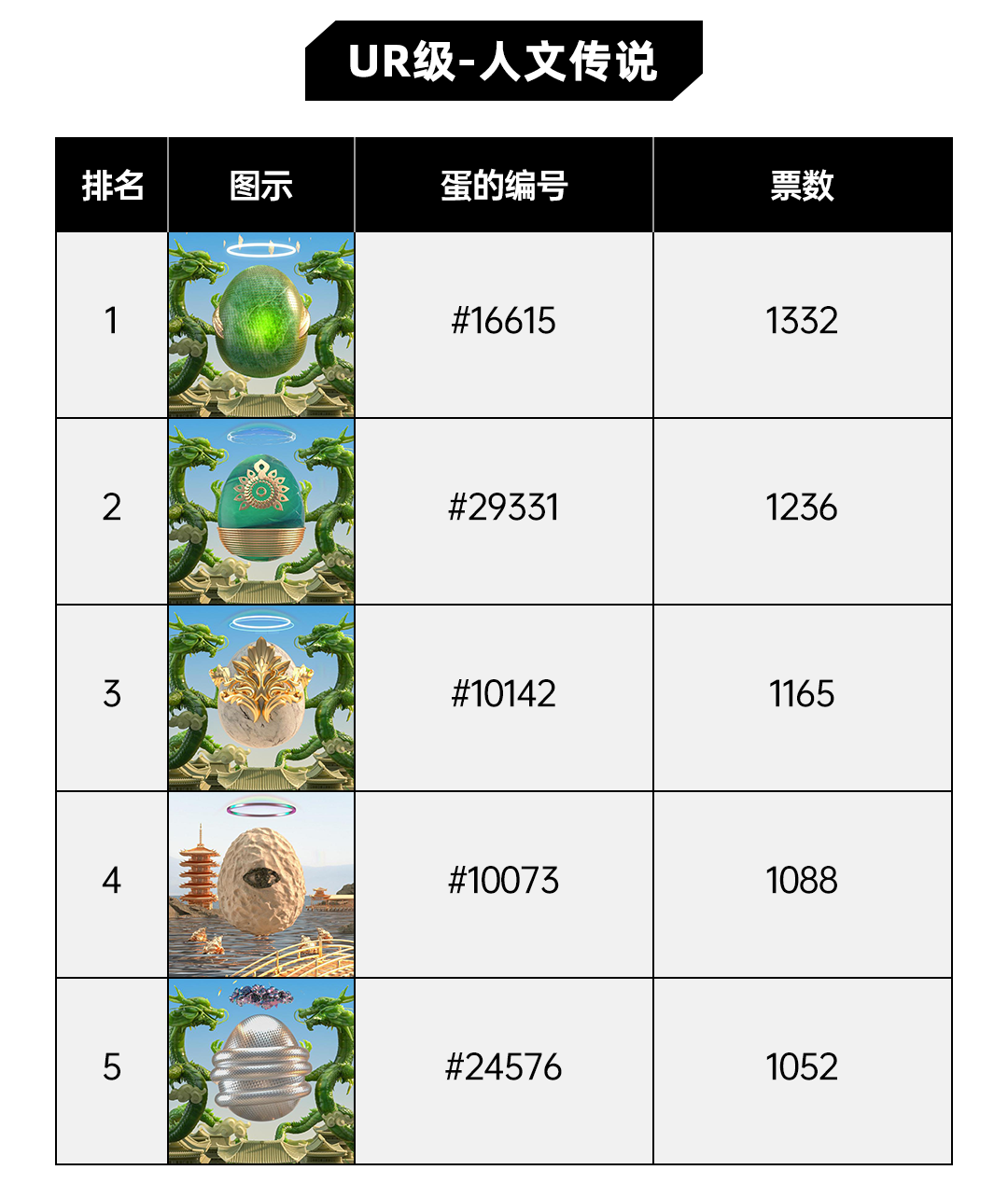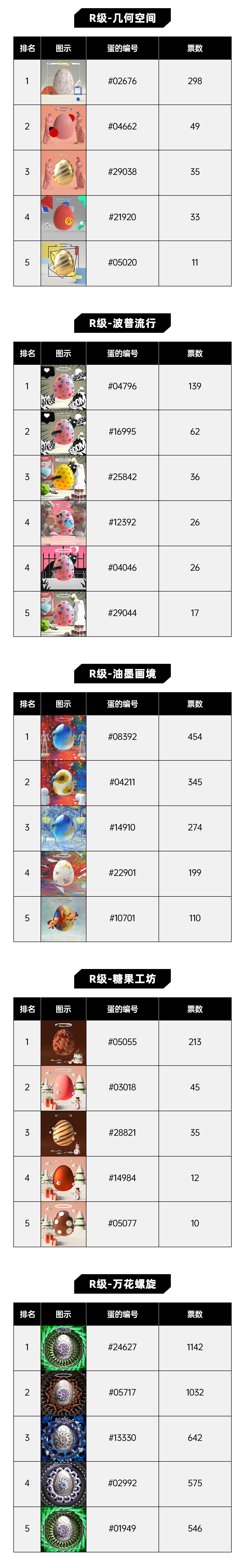 截至2022年7月4日12:00,达文奇的蛋线下艺术展参展作品征集活动正式结束,感谢大家的参与与支持!公众根据喜爱程度从12个主题累计票选出60余个D-A-N,现将投票结果进行公示如下: