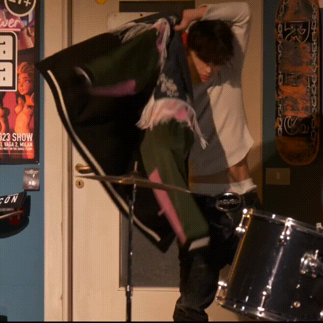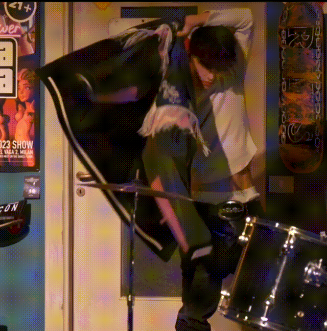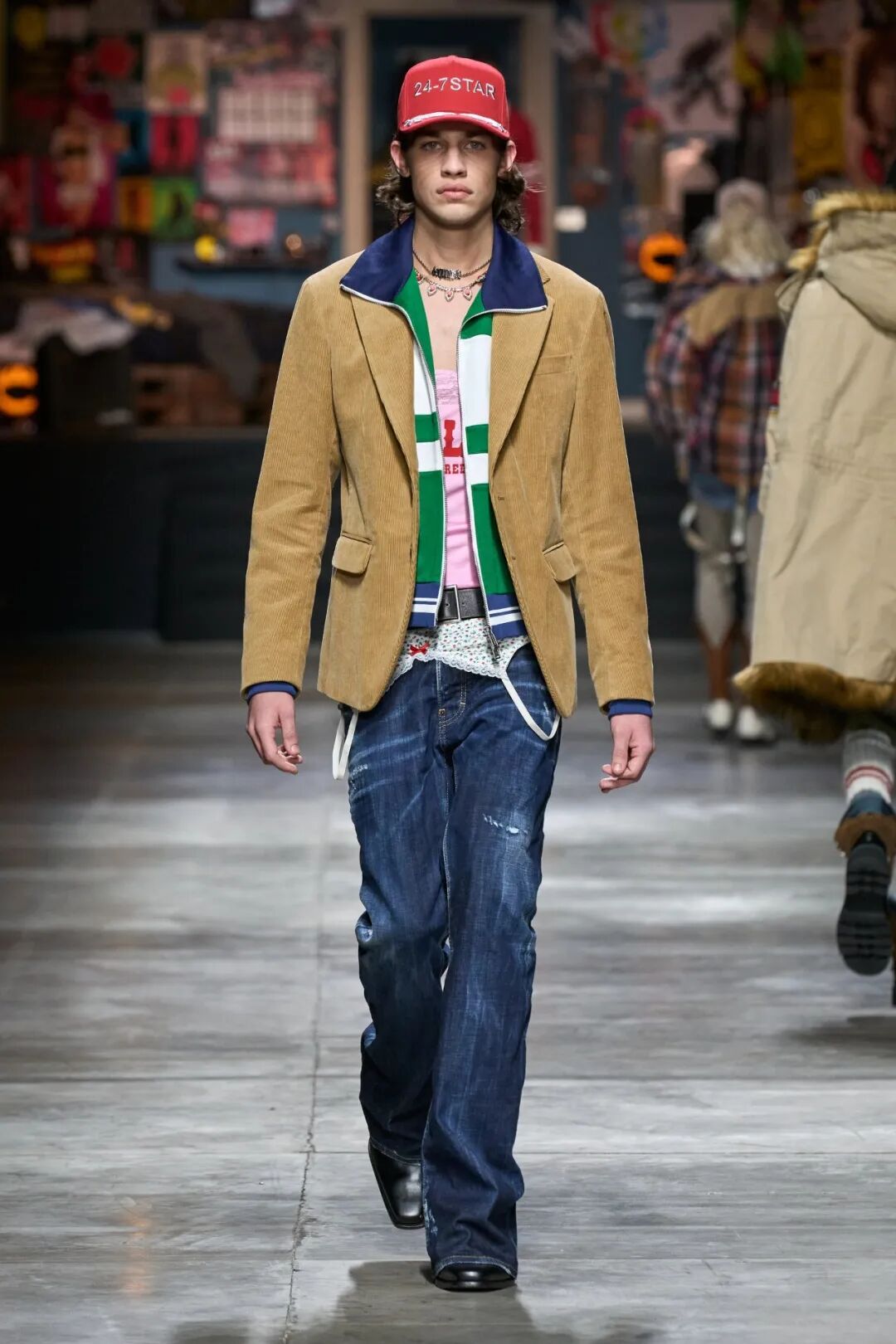 宿舍实际上被精心复制为走秀的背景,配备了所有酷炫的用具,从 X 到 Y 到 Z 以及介于两者之间的每一代人的青少年时代。TikTok 超级巨星 Nic Kaufmann 和 Jean Carlo Jashlem 开场,随后是一连串精心设计的服装,这完全归功于 Caten 对混搭艺术的掌握。