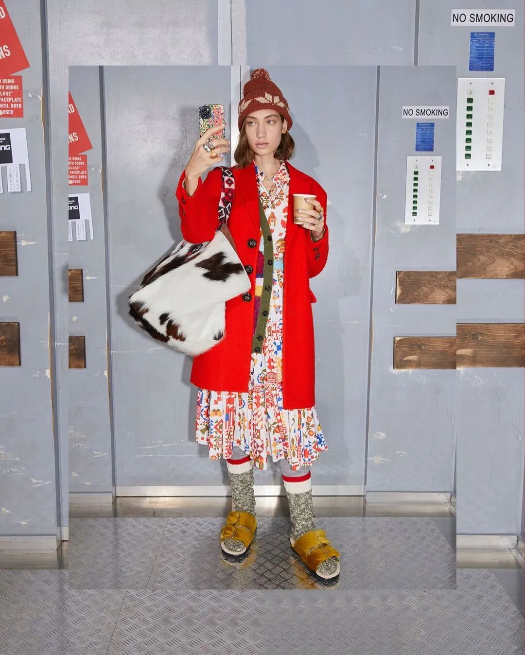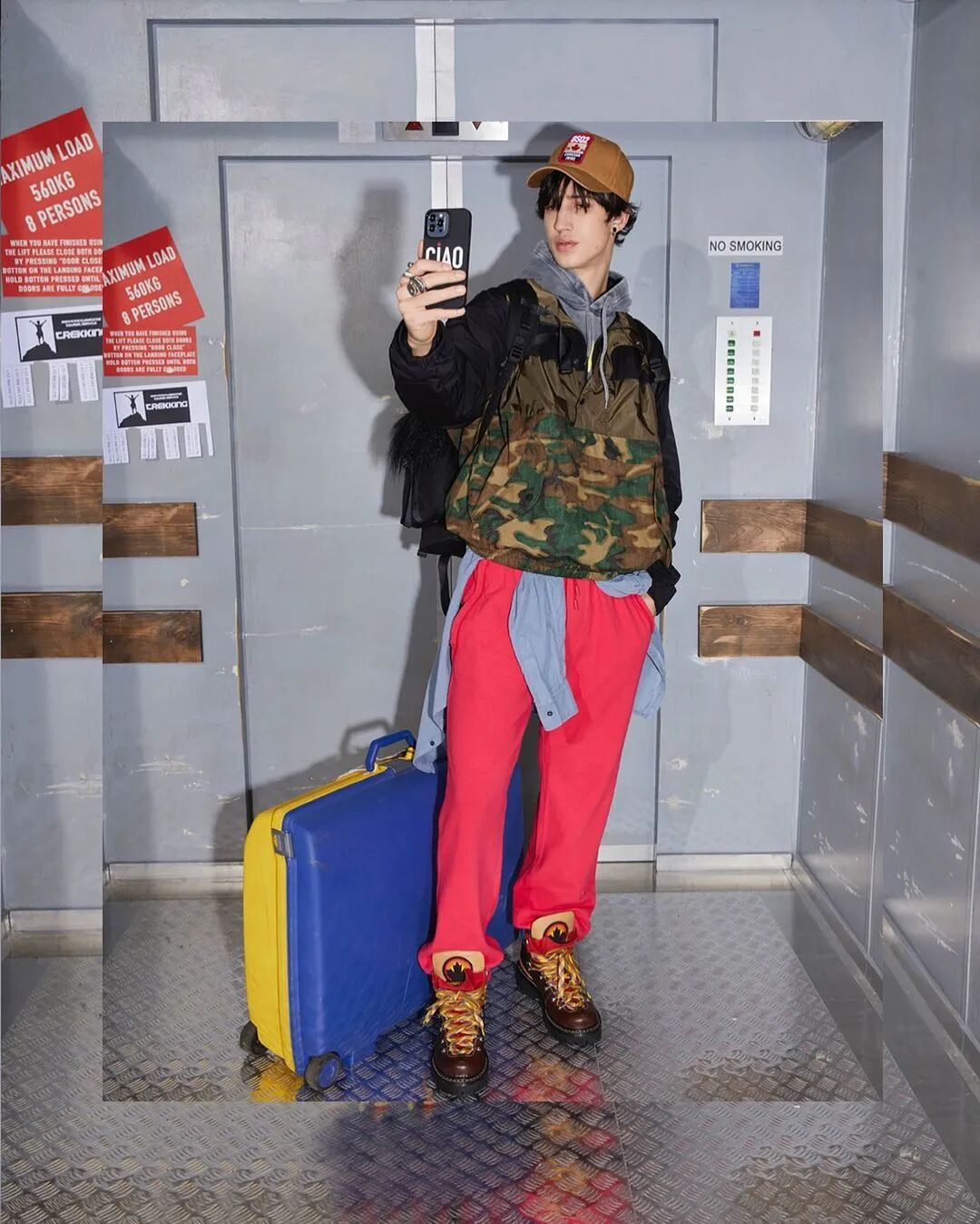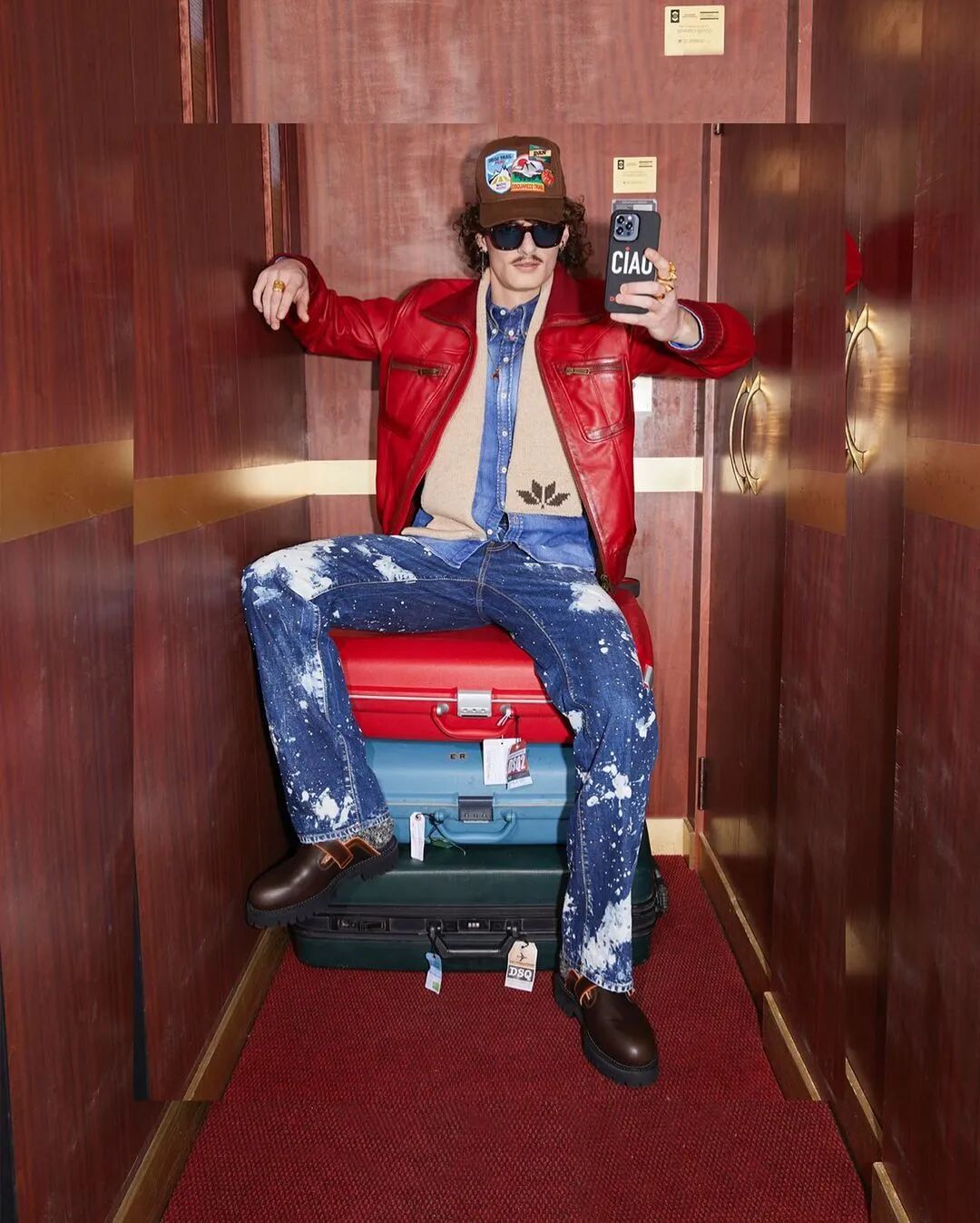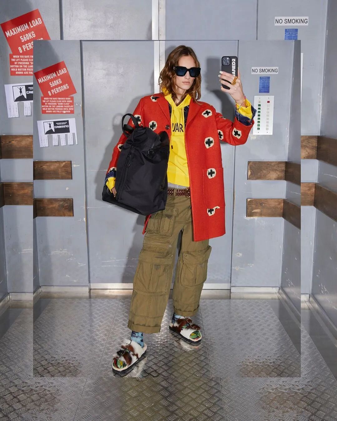 似乎对着电梯自拍可以满足人们的表现欲,又不会有旁人注视的尴尬,因此形成了社交媒体上的“暗流”。在2022早秋系列,Dsquared2 用了Instagram上最火的#elevatorselfies方式诠释型录。