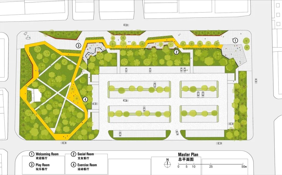 在此框架下,Crossboundaries 受委托将文化广场停车场附近的线性街景重建为一个充满活力的户外社区公园,这个项目是第一个实现的设计,遵循着社区精神设计的领导。