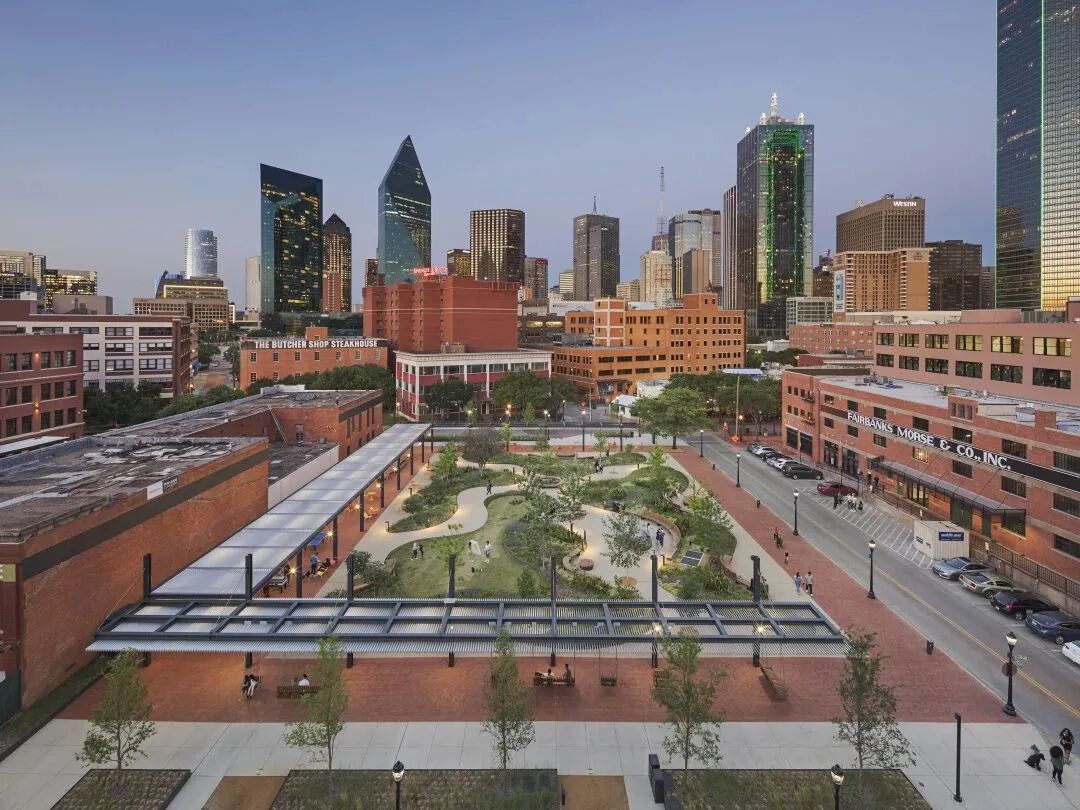 西区广场想要成为一个充满活力的公共空间,平衡历史与创新,项目位于达拉斯市中心历史街区的中心地带,用新一代公园取代了以前的地面停车场,公园的设计创造了一个试验场,用于将技术与休憩的绿色空间共生。