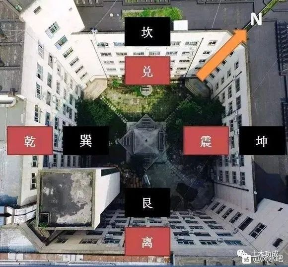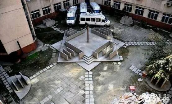 同样是土木工程专业实力非常强的高校——西南交通大学,在该大学的电气馆院内居然有一座类似八卦阵一样的建筑。在电气馆的中庭用石板做了八个卦象对称摆放,中间是一根石柱。