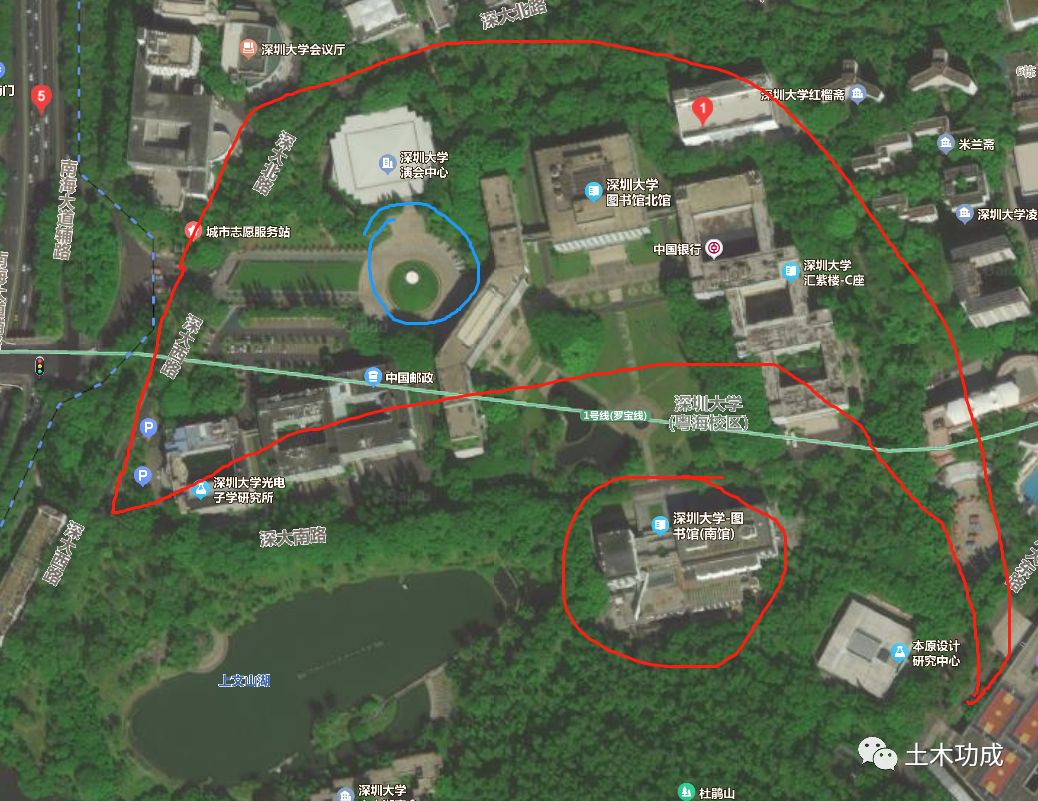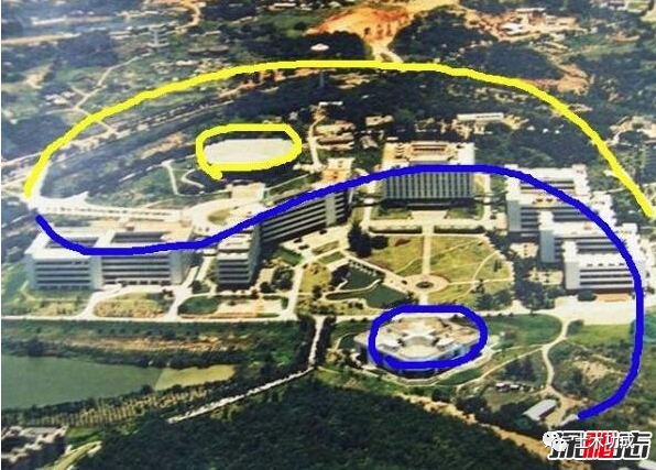 深圳大学最开始的俯视图看上去世一个八卦阵。目前由于深圳大学不断扩大,其鸟瞰图已经看不出那么明显了。但是深圳大学内的建筑布局很特别。
