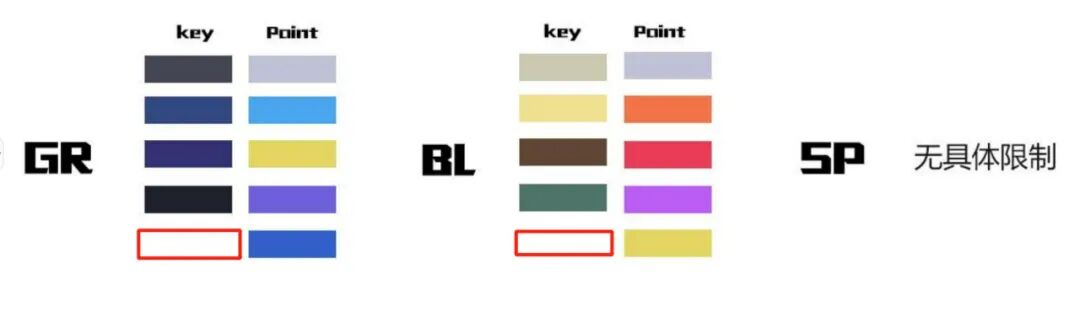 A:下图是各个阵营的主色和辅色的色谱。参赛者可以在色谱范围内发挥,保卫者偏冷色为主,潜伏者偏暖色为主,灵魂武者无限制。红框处为白色