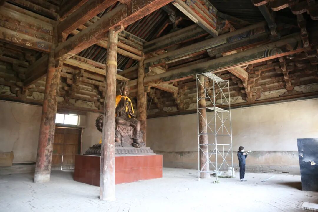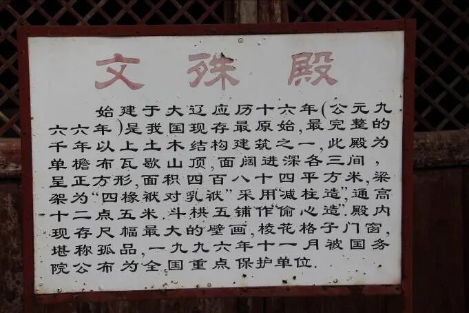 文殊殿内遗留着珍贵的辽代壁画,东西北三壁上皆是大幅壁画,因其用黄泥覆盖,得以长久保存至今。