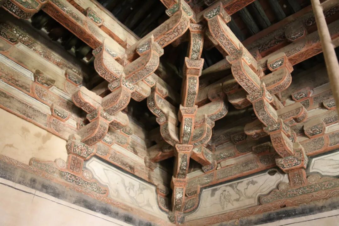 内檐斗拱上有着精妙的彩绘图案