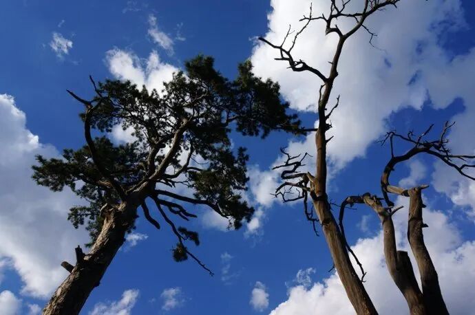寺院两颗千年古松,一荣一枯