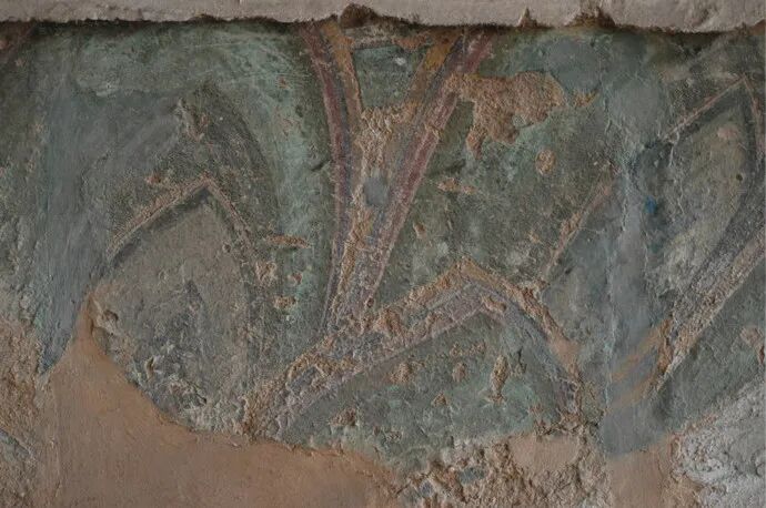 从泥坯脱落处露出的内容看,画面属佛教故事,画风保留有浓郁的唐代风格。