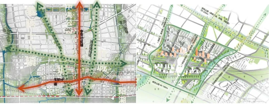 ▲站前活力绿轴:与站本体轴线衔接,成为样板区南北人气活力带,链接广域 ©NIHONSEKKEI