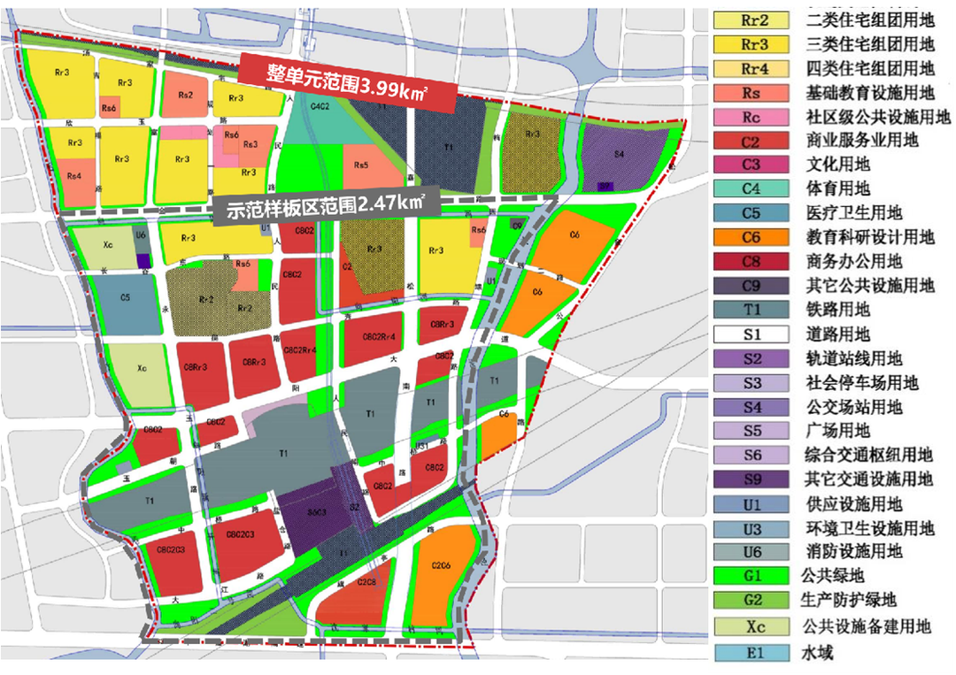 总面积约3.99平方公里,总建筑量约442万平方米。其中,松江枢纽示范样板区面积2.47平方公里,总建筑量约300万平方米。