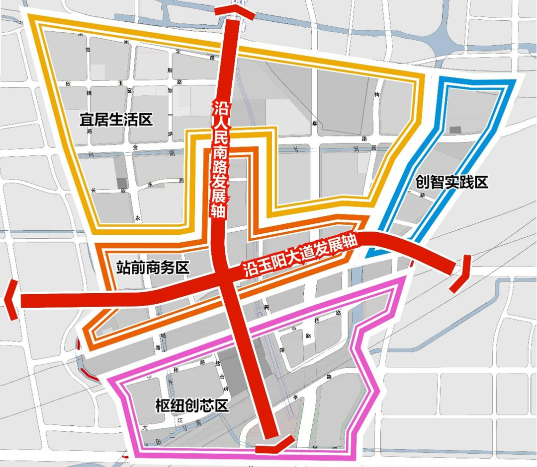 ▲ 松江枢纽核心区铁路夹心地位置示意