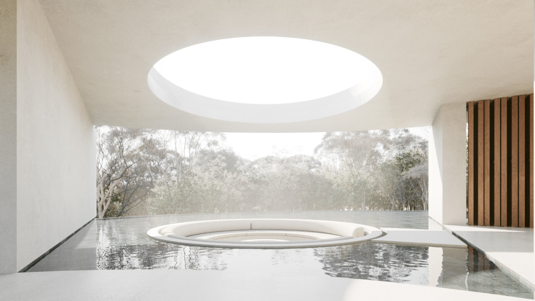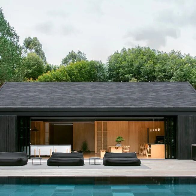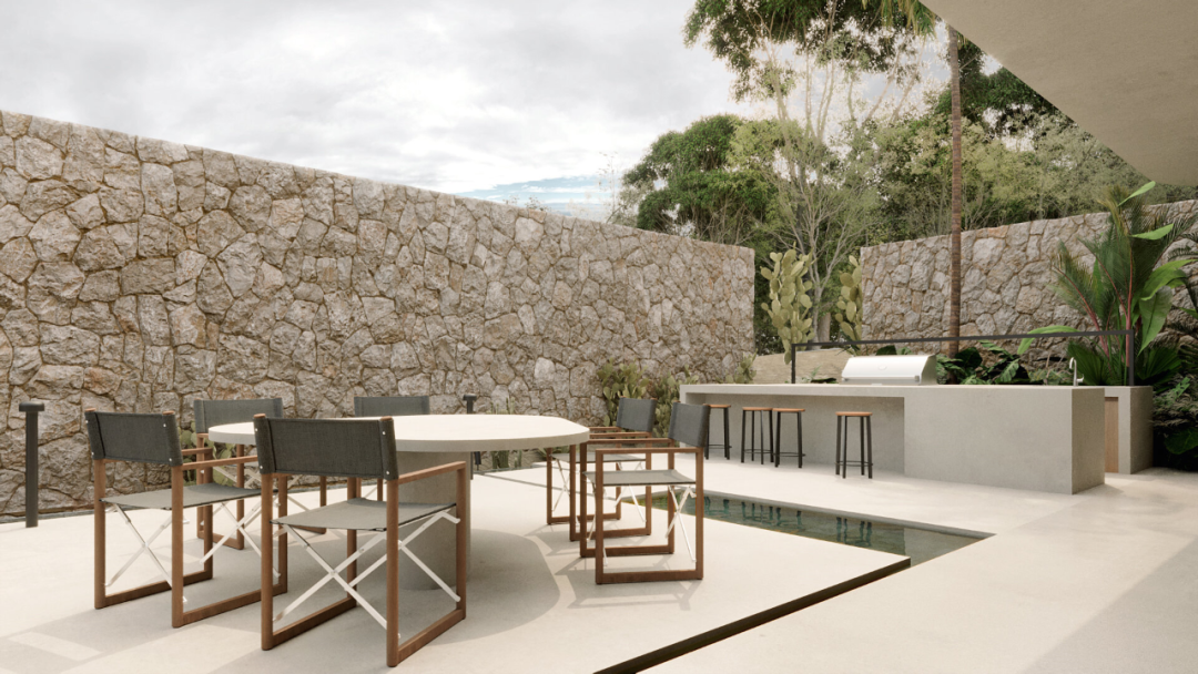 室外的庭院设有户外用餐区、户外烧烤区、屋顶泳池,景观布置则根据本土工艺和地域性来规划。